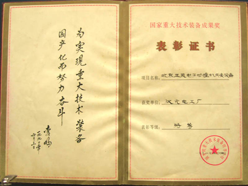 電氣產(chǎn)品3C認證證書 湖北省第17屆優(yōu)秀企業(yè)證書 北京電子對撞機改造工程獎牌