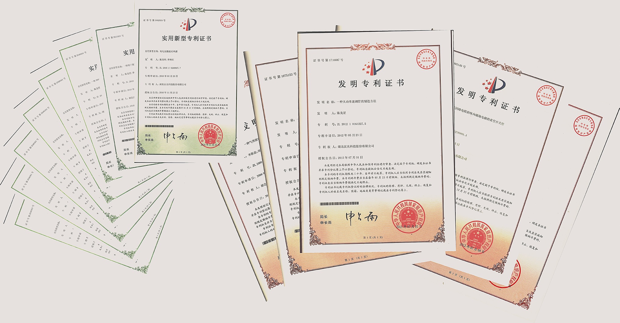 公司在速調(diào)管研制過(guò)程中,獲得國(guó)家授權(quán)專利20多項(xiàng),其中發(fā)明專利6項(xiàng)。