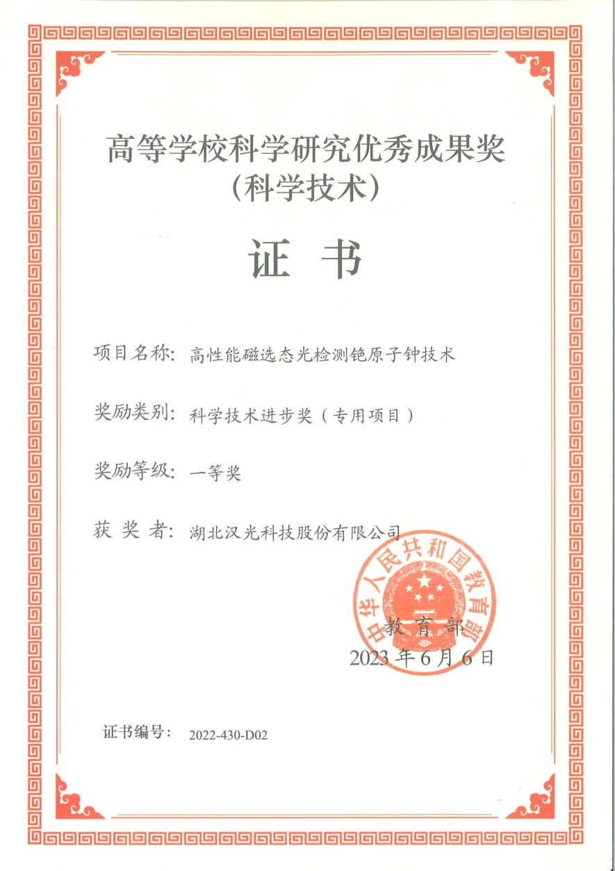 近日,公司收到了由教育部頒發(fā)的“高等學(xué)??茖W(xué)研究?jī)?yōu)秀成果獎(jiǎng)(科學(xué)技術(shù))證書(shū)”。公司與北京大學(xué)聯(lián)合研發(fā)的“高性能磁選態(tài)光檢測(cè)銫原子鐘技術(shù)”榮獲教育部科學(xué)技術(shù)進(jìn)步獎(jiǎng)(專(zhuān)用項(xiàng)目)一等獎(jiǎng)。