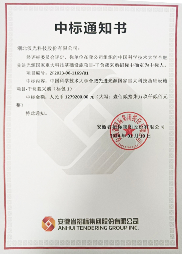 1月10日, 公司收到招標(biāo)機(jī)構(gòu)安徽省招標(biāo)集團(tuán)有限公司發(fā)出的中標(biāo)通知,公司自主研制的波導(dǎo)系統(tǒng)和干負(fù)載成功中標(biāo)中國(guó)科學(xué)技術(shù)大學(xué)合肥先進(jìn)光源國(guó)家重大科技基礎(chǔ)設(shè)施項(xiàng)目,中標(biāo)總價(jià)500余萬(wàn)元。此次中標(biāo),標(biāo)志著我公司自主研制的波導(dǎo)系統(tǒng)和干負(fù)載在國(guó)家重大科技基礎(chǔ)設(shè)施中得到進(jìn)一步廣泛應(yīng)用。