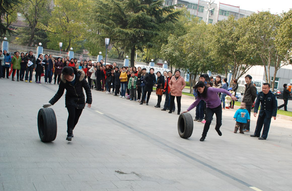 今年的比賽項目除了保留的兩人三足跑、端乒乓球接力、車輪滾滾、背運氣球和跳繩外,還增添了踩氣球比賽,受到大家歡迎,共有15個隊參加踩氣球比賽。五顏六色的氣球在女工們的腳下噼哩叭啦炸響,將比賽氣氛推向高潮。